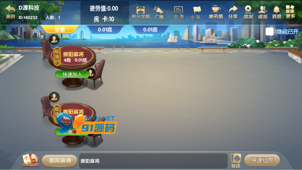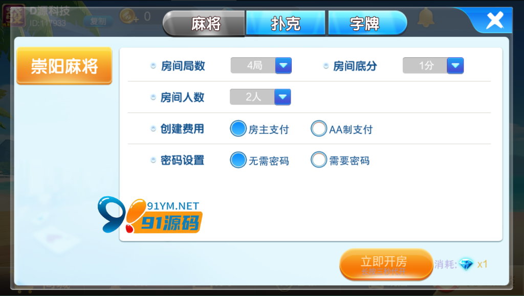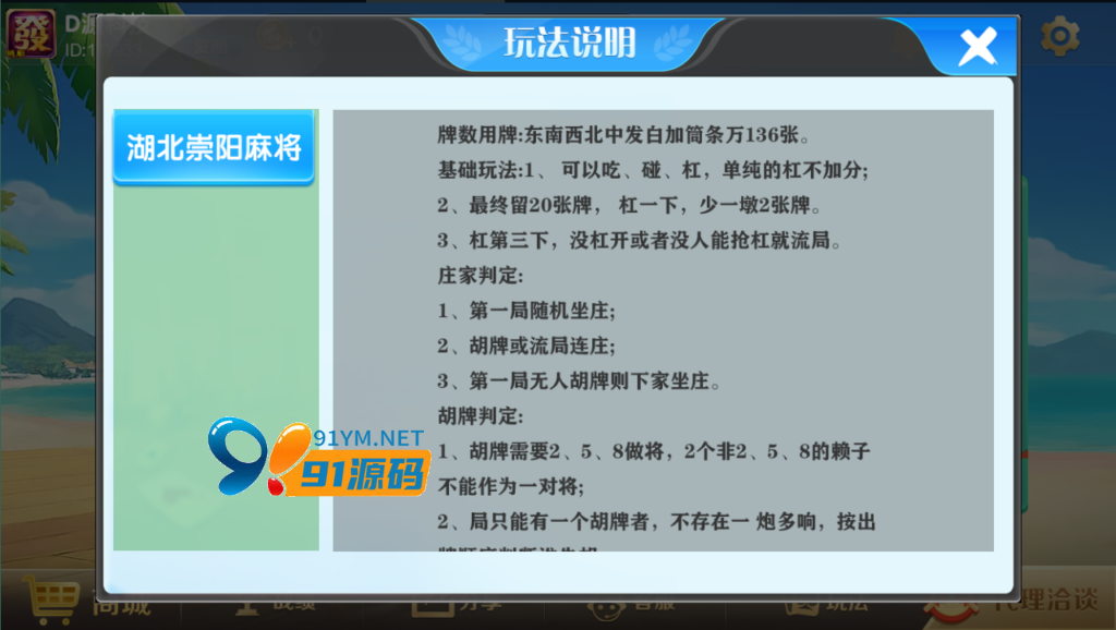 开心云游崇阳大联盟单一麻将地方棋牌房卡积分麻将