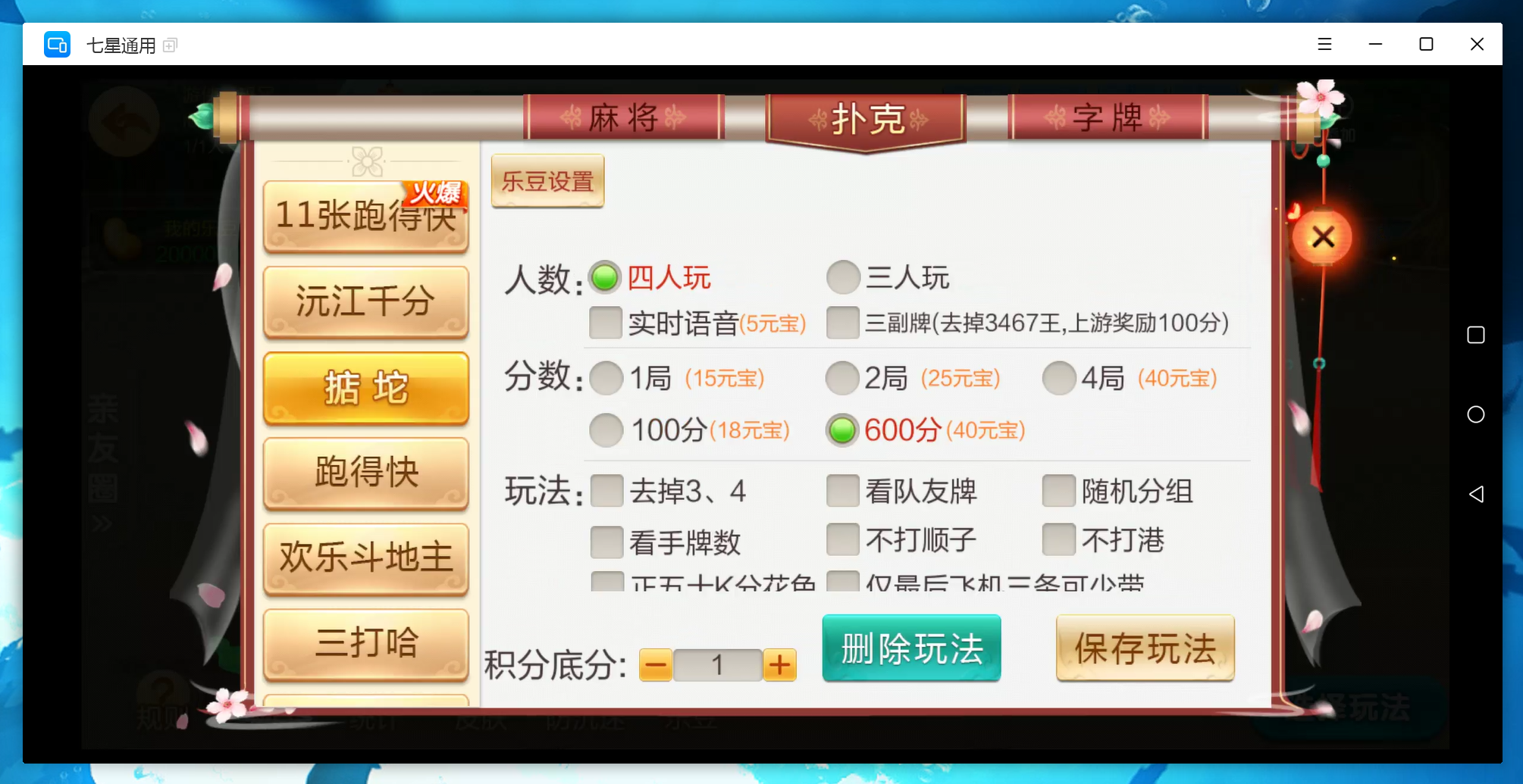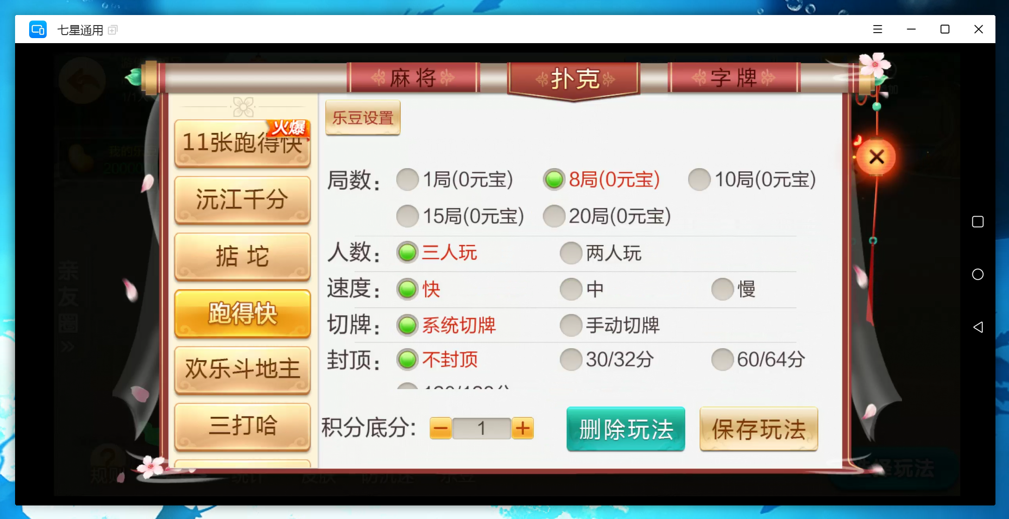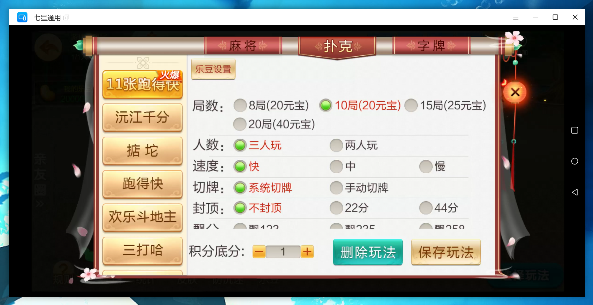 扑克:11张跑得快,跑得快,斗地主,三打哈,新三打哈,沅江千分,掂坨