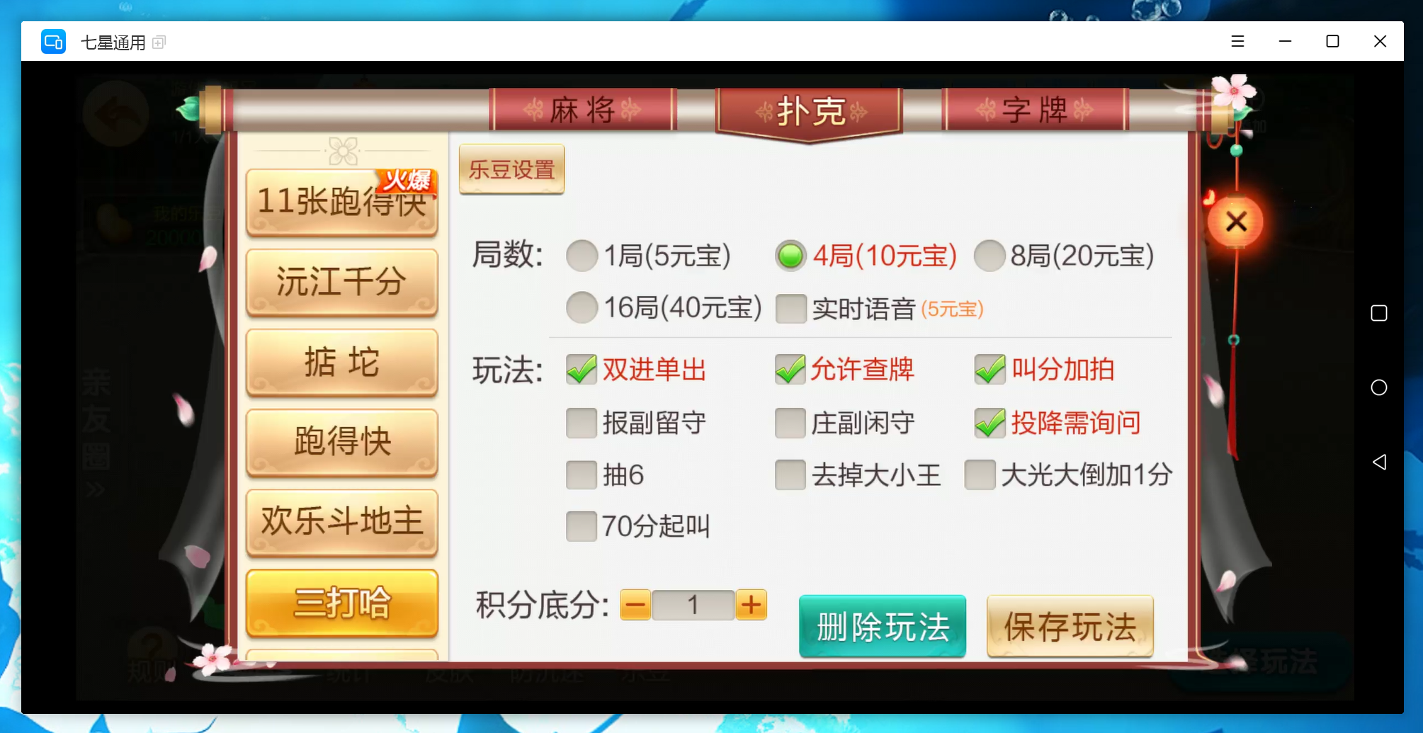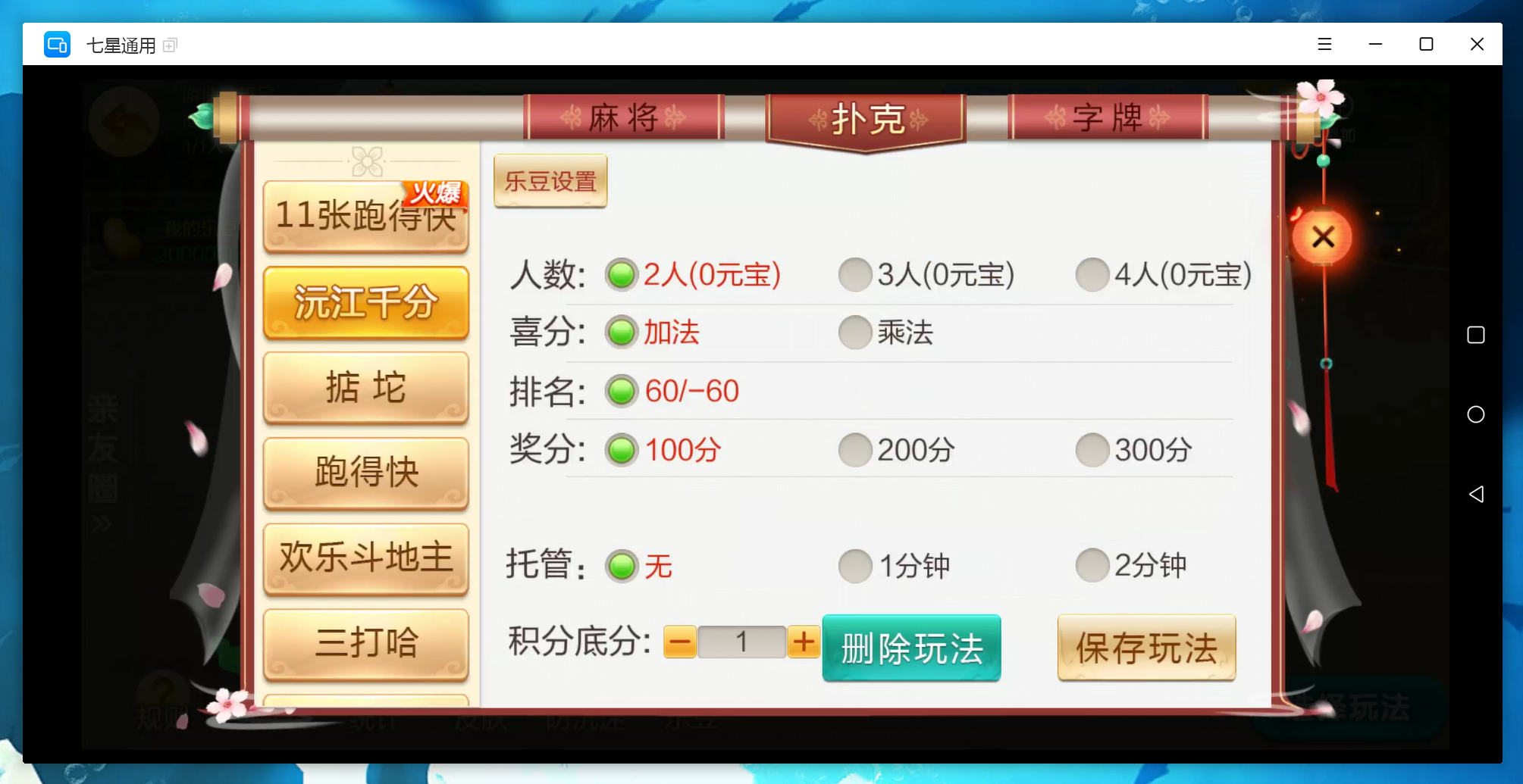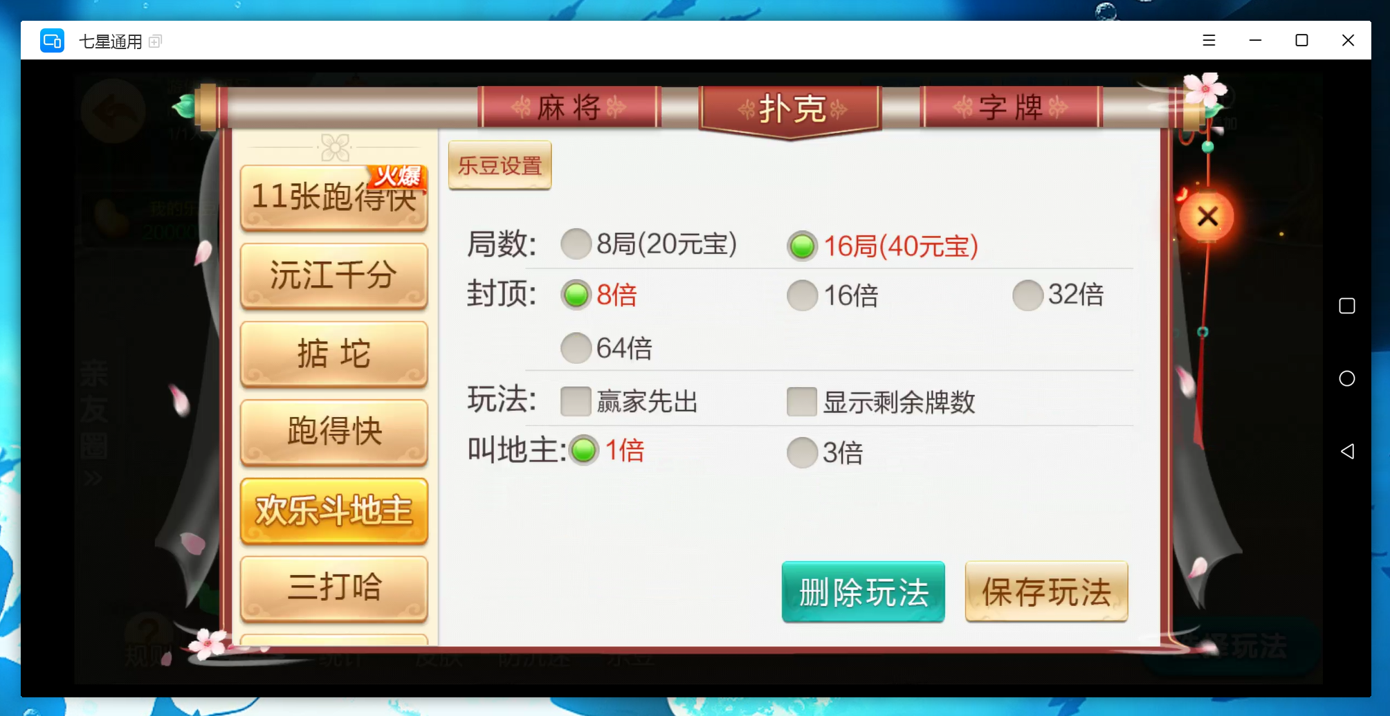 扑克:11张跑得快,跑得快,斗地主,三打哈,新三打哈,沅江千分,掂坨