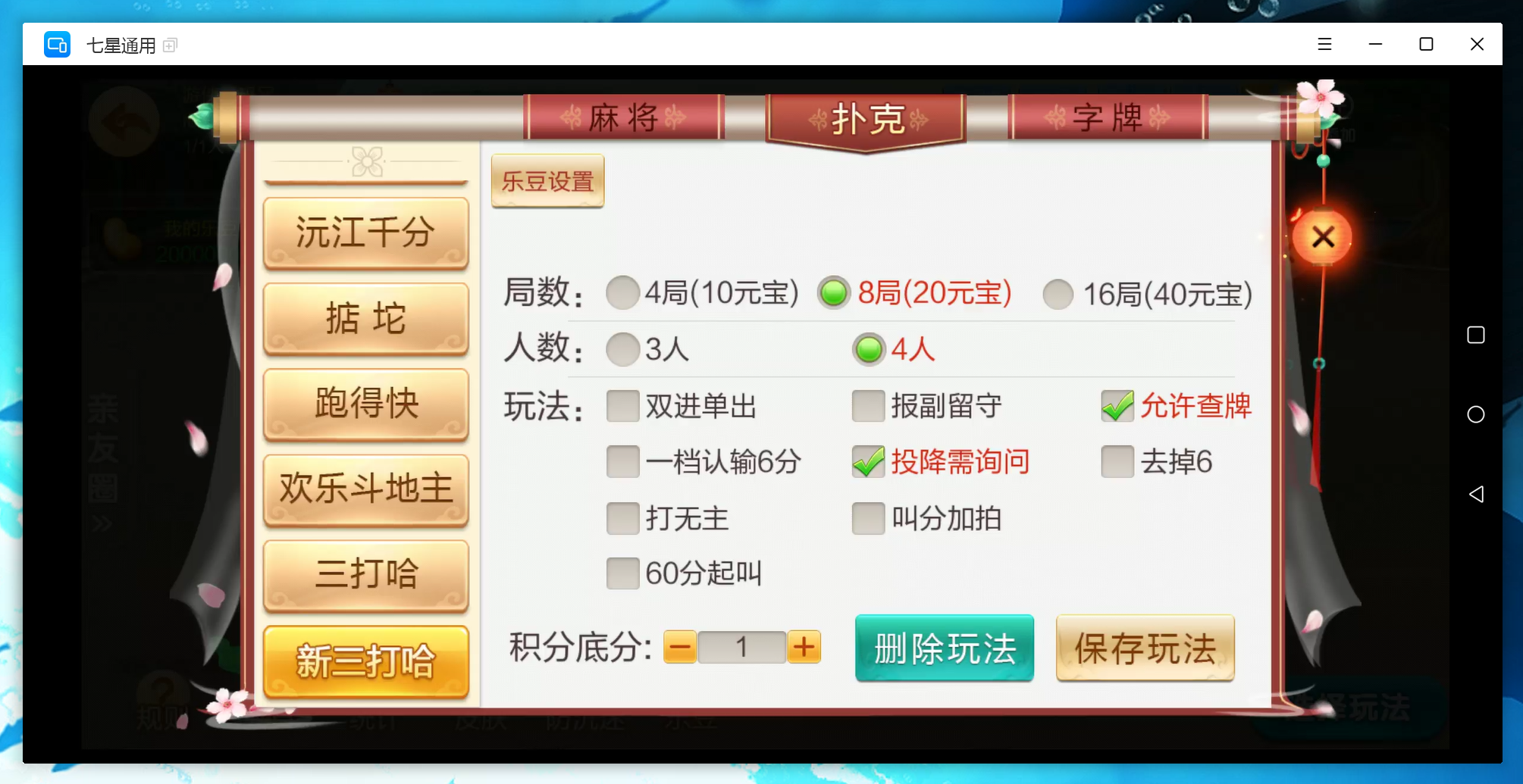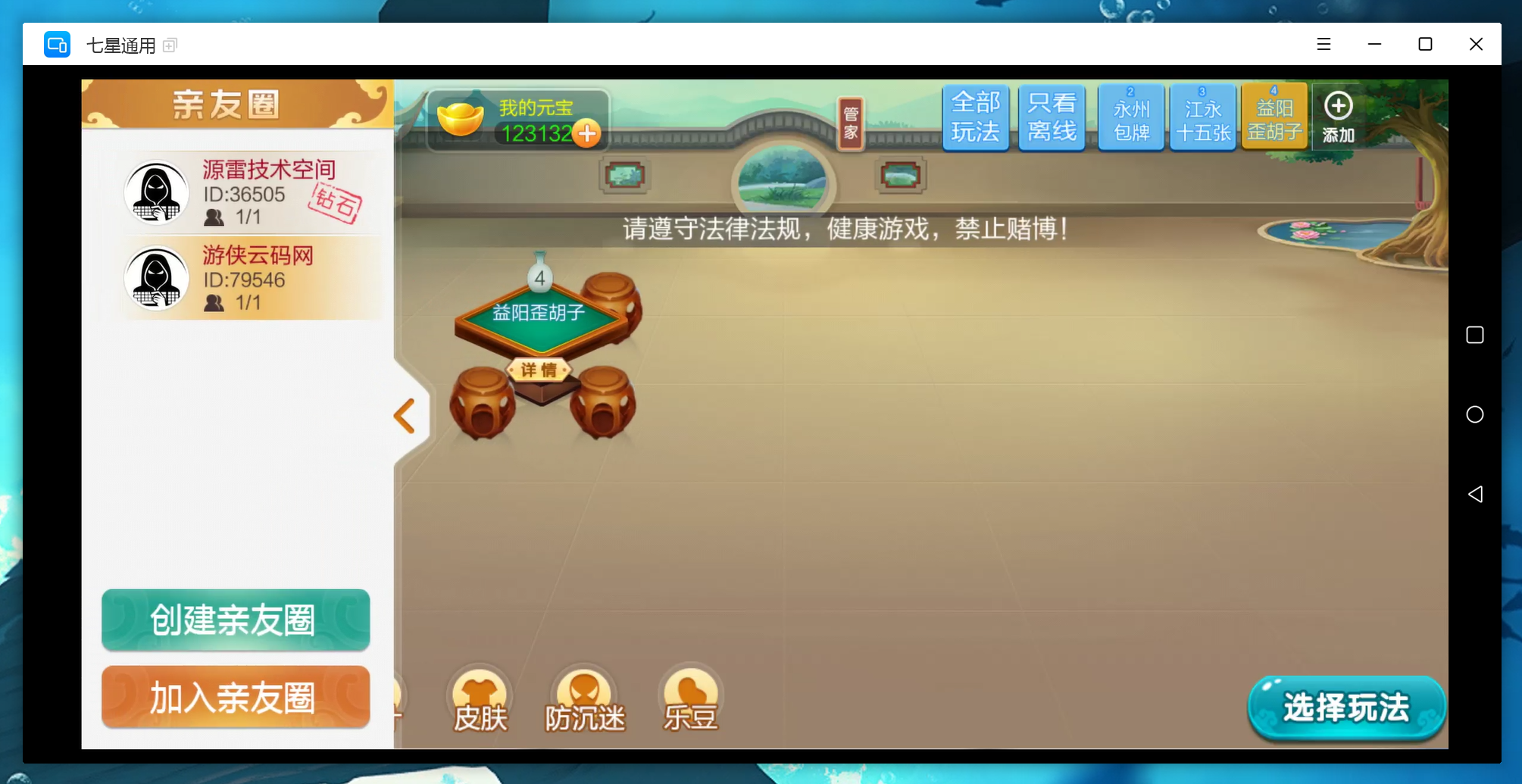 这个端有普通房卡形式,乐豆形式,角逐形式还额外加了防沉迷形式。很是适合运营的产物。