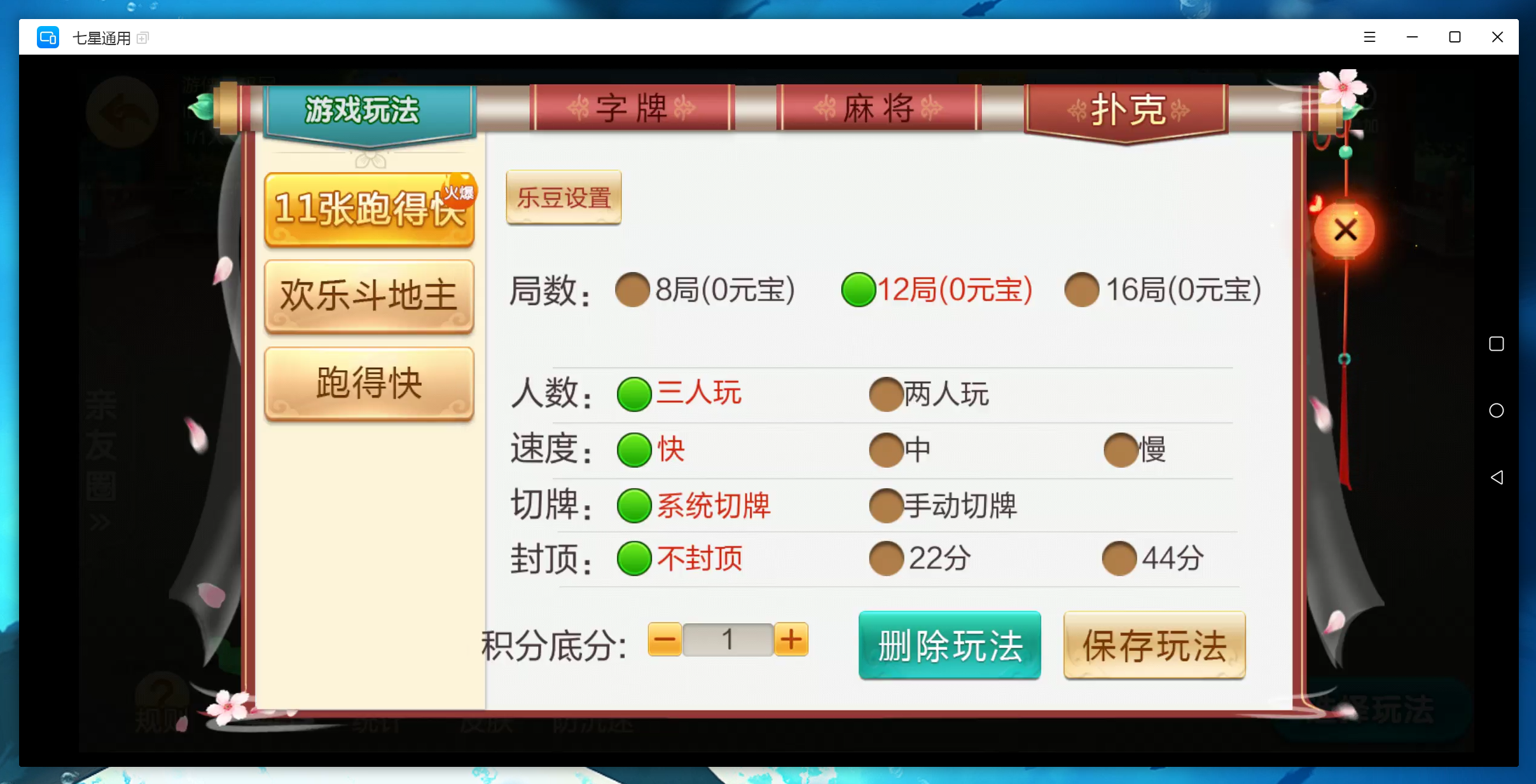 这个端有普通房卡形式,乐豆形式,角逐形式还额外加了防沉迷形式。很是适合运营的产物。