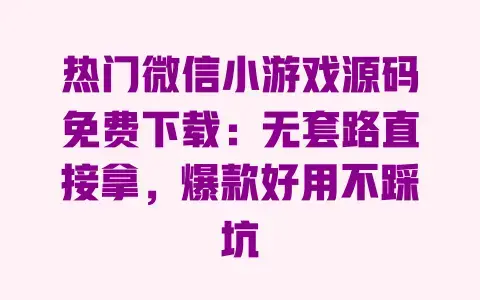 这些源码都是当下微信生态里爆火的类型:休闲益智、合成养成、轻竞技类……每一款都经过实测,功能完整、运行流畅,不管你是新手练手入门,还是想快速上线小项目赚流量,都能直接用。更关键的是无套路!不用关注一堆公众号,不用转发求赞,不用填冗长信息,就是单纯给你好用的源码,帮你少踩坑、省时间。