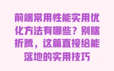 前端常用性能实用优化方法有哪些?别瞎折腾,这篇直接给能落地的实用技巧