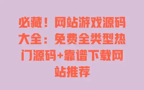 必藏!网站游戏源码大全:免费全类型热门源码+靠谱下载网站推荐