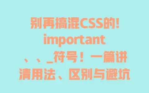 这篇文章就把这三个符号扒得明明白白:!important到底能提升多少权重?哪些场景用它是“救急”(比如覆盖第三方组件样式),哪些场景用它是“埋雷”(比如嵌套使用)?和_都是浏览器hack,区别到底在哪?哪些旧版本IE还需要它们?更关键的是,教你避开那些“一用就错”的坑——比如别让!important变成“权重炸弹”,别把hack符号用在现代项目里……