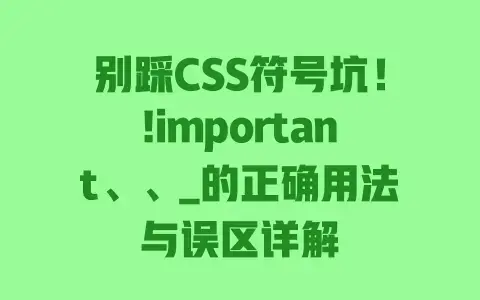 这篇文章就帮你彻底拆穿这三个符号的“真面目”:!important到底什么时候能用?通配符的性能雷区怎么避?_下划线的“兼容小技巧”现在还适用吗?我们把每个符号的正确用法、适用场景,还有新手最常犯的误区一一捋清楚,帮你避开这些“隐形坑”,让你写CSS时再也不用为“用错符号”头疼,样式效果更稳定,效率也更高。