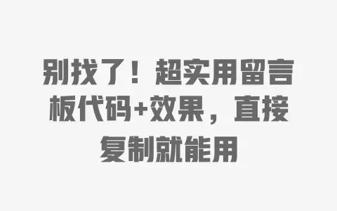 不管你是刚接触建站的新手,还是想省时间的老用户,再也不用花几小时找靠谱资源、调试bug。接下来会一步步展示每个代码的实际效果:比如能显示留言时间的基础款,能上传头像的互动款,还有带回复功能的进阶款——看完就能挑中适合自己网站的样式,分分钟让你的页面有了能“聊起来”的小窗口。不用再瞎找了,这篇就是你要的“留言板神器”!