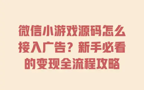 微信小游戏变现的核心就是“把广告接对、接好”——这篇攻略帮你跳过试错环节,直接打通从源码到赚钱的关键链路,新手也能快速get变现能力。