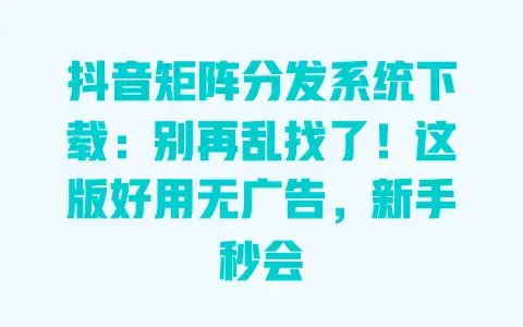 做抖音矩阵的朋友,最近是不是被“找分发系统”搞疯了?上周我帮楼下开美甲店的小琳找系统,搜“抖音矩阵分发”出来的链接,要么点进去全是“领取VIP”的弹窗,关都关不掉;要么下完软件,界面全是英文术语,小琳对着“Batch Distribution”看了十分钟,问我“这是批量分发吗?”;更绝的是有个系统,刚传了3个视频,就弹出“需开通年费会员才能继续”——合着免费版就给尝个鲜?