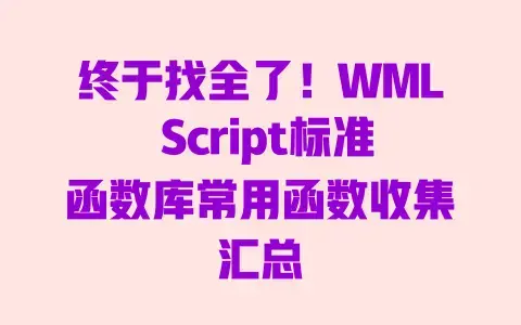 不管你是刚学WML Script的新手,想快速摸清常用函数的“门路”;还是老开发要查缺补漏,省得再翻零散资料——这篇汇总直接当“速查手册”用,不用再到处找了,打开就能查!