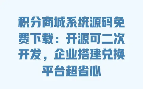 你有没有过这种情况?想给企业搭个积分商城拉用户复购,结果要么找第三方平台被「功能限制」卡脖子——想加个专属规则要加钱,要么自己开发得花大几万找技术团队,折腾俩月还没上线?我去年帮朋友的社区超市解决过一模一样的问题,最后用一款开源积分商城系统源码搞定了,不仅没花冤枉钱,还不到一周就上线,现在他们家用户攒积分换鸡蛋的积极性老高,复购率比之前涨了20%。今天就跟你唠唠,为什么这款免费下载的开源源码,会成为中小企业搭积分平台的「省心神器」。