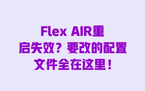 这篇文章就把“重启要改的配置文件”扒得明明白白:从Win/Mac系统下怎么快速找到配置文件位置,到哪些关键参数是“重启开关”、数值怎么调才有效,甚至改完后怎么验证效果,连新手常踩的“参数写错节点”“权限没开导致不生效”这些坑都帮你避开。不管你是刚上手的小白,还是被重启问题折腾过的老开发,不用再瞎试代码、不用查零散教程,跟着里面的步骤走,10分钟就能把Flex AIR的重启功能“掰回正轨”。接下来咱们直接拆问题、讲办法,彻底解决重启失效的麻烦!