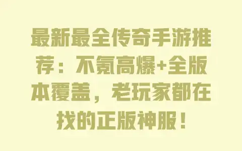 今天就跟你唠唠,为什么“不氪高爆+全版本覆盖”的传奇手游成了老玩家的“香饽饽”,以及最新最全的正版神服推荐——全是我和老周亲测有效的,帮你避开90%的坑。