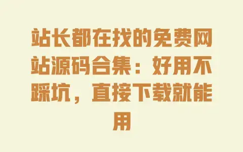 对了,如果你用了这里面的源码,或者有更靠谱的推荐,欢迎在评论区告诉我——毕竟站长之间互相帮衬,比瞎找靠谱多了。我每周都会更新这份清单,争取把所有“不踩坑”的免费源码都收进来,让大家不用再花时间翻论坛、加群、踩陷阱。