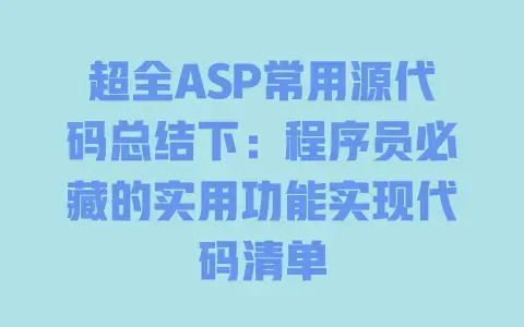 不管你是刚接触ASP的新手(想快速掌握“能干活”的技巧),还是需要应急的老开发者(不想重复造轮子),这份清单都能成为你的“代码小助手”。 我们直接上干货——那些让你拍着大腿说“早知道就好了”的ASP常用代码,全在这里了!