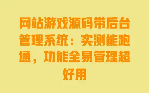 不管你是想做小范围的游戏分享站,还是打算运营商业游戏平台,这套“能跑通、功能全、易管理”的源码+后台组合,都能帮你省掉80%的前期折腾。接下来就跟你详细唠唠,它到底“好用”在哪些细节里!