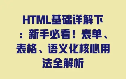 文章聚焦新手必懂的三大核心模块:表单、表格、语义化。表单部分从