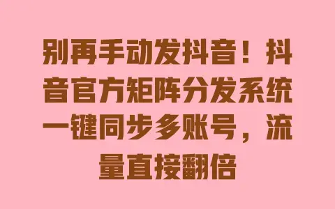 别再熬了!抖音官方矩阵分发系统直接把这些麻烦“一键清零”——不管你有3个还是10个账号,一次编辑内容,点一下就能同步到所有绑定账号,封面、文案、话题全不用重复改。更稳的是,这是抖音自己的工具,不会像第三方那样动不动限流,内容同步速度比手动快2倍,省下来的时间能多写2条脚本、拍1条好视频。