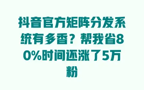 抖音官方矩阵分发系统有多香?帮我省80%时间还涨了5万粉