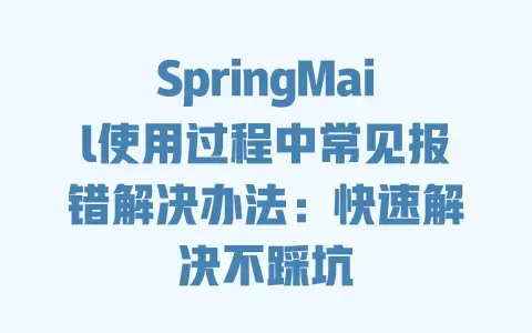 这篇文章不绕弯子,直接针对SpringMail最常见的报错——从SMTP服务器配置错误、SSL/TLS协议不兼容,到用户名密码加密问题、附件大小限制,把每个问题的“病根”扒清楚,再给你一步到位的解决步骤。不用翻官方文档逐行找,不用猜“是不是版本的锅”,跟着做就能快速摆平问题。
