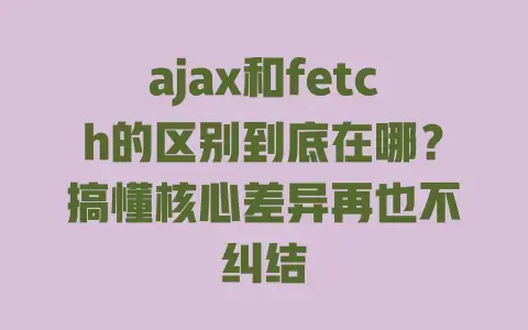 做前端开发时,你是不是也有过这种纠结?要发网络请求了,盯着代码框犯难——选ajax还是fetch?明明都是拿数据,可有时候ajax写着顺手,有时候fetch更清爽,到底差在哪儿?其实答案藏在底层逻辑、使用体验和踩坑细节里:ajax依赖XHR对象,得裹着回调写代码;fetch是浏览器原生API,天生支持Promise,语法更简洁,但error处理有“小陷阱”——404、500不会直接抛错,得自己判断状态码;就连请求配置都不一样:ajax的async、headers是“老熟人”,fetch的credentials默认不发Cookie,一不小心就踩跨域坑……这篇文章把这些核心差异掰碎了讲清楚,不管你是刚入门的新人,还是常写请求的老鸟,读完就能秒懂“什么时候该用谁”,下次写代码再也不用站在两个选项前犹豫!