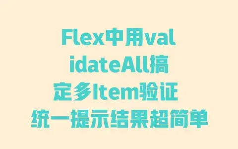 这篇文章就手把手教你用validateAll()实现多Item验证:从怎么给组件绑定验证规则,到如何调用方法收集结果,再到把错误信息整合成清晰的提示(比如弹一个对话框列全问题),甚至会帮你避掉“忘记关联验证器”“结果未清空”这类常见坑。不管你是刚学Flex的新手,还是想优化旧代码的老开发,跟着步骤走,5分钟就能把混乱的验证逻辑变清爽。