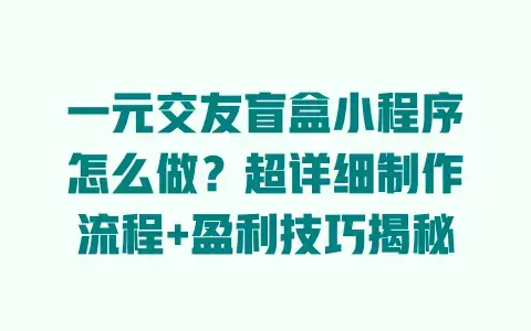 其实做一元交友盲盒小程序没那么复杂——先跑通“最小闭环”,再慢慢优化功能;先赚“小钱”,再靠增值服务和裂变赚“大钱”。我室友一开始也觉得“做小程序很难”,但跟着我理的流程走,只用了20天就上线了,现在每月赚的钱比他兼职打工多3倍。