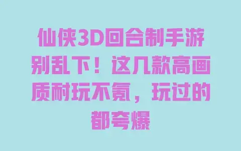 你要是也在找“不坑的仙侠3D回合制手游”,不妨试试这几款——要是玩了觉得“对味”,欢迎回来留言告诉我;要是踩了什么新坑,也可以分享出来,让大家避避雷。 玩游戏嘛,不就是图个“爽”和“代入感”吗?那些“偷懒”的厂商不懂,可总有厂商懂。
