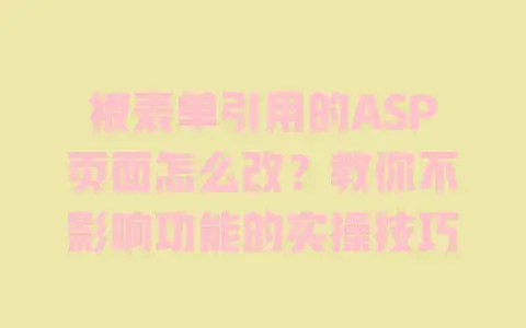其实改被表单引用的ASP页面,核心就是“找准关联→做好备份→守好规则→仔细验证”——我帮过5个朋友、3个客户改这类页面,按这套流程走,从来没翻过车。比如上个月帮一个家政公司改订单提交页,加了“服务时间”字段,我先找对了action