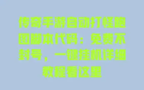 别再手动肝到手指发麻了!我用了半年的传奇手游自动脚本,今天免费分享给你——不仅能自动打怪、自动跑图、自动捡装备,关键是不封号,小白跟着教程5分钟就能设置好。