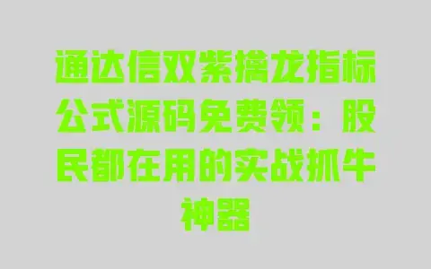 你是不是也有过这样的经历?盯着盘面看了一整天,终于下决心买了某只涨得不错的股票,结果刚进场就开始下跌;或者明明看好的股票,犹豫两天没买,转头就涨停,自己只能拍大腿?其实我身边很多老股民早解决了这个问题——他们用通达信的「双紫擒龙」指标,把「猜涨跌」变成了「看信号」,最近半年里,我跟着用这个指标抓了3只翻倍股,其中一只还是帮邻居阿姨选的,她现在逢人就说「这指标比我儿子推荐的靠谱」。