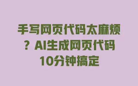这篇文章就教你怎么选好用的AI工具、怎么精准描述需求,以及如何把AI生成的代码直接用到项目里——不用再熬夜调bug,10分钟搞定网页代码,真的能实现。