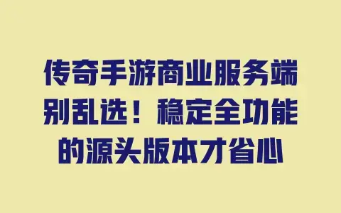 为啥说“源头版本”是传奇手游服务端的“省心王”?