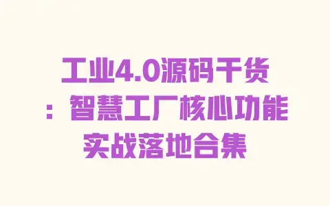 这篇文章就是专门解决这个痛点的——我们把智慧工厂落地中最刚需的核心功能,整理成了一套能直接用的工业4.0源码合集。从设备MQTT协议对接、产线PLC数据采集,到实时监控dashboard搭建、质量异常预警逻辑,每一部分都不是空泛的“代码片段”,而是结合真实工厂案例的完整落地方案:讲清楚每一行代码的作用,说明怎么和你们厂的机床、ERP系统打通,甚至附了工厂用这套源码后产线效率提升30%的真实数据。