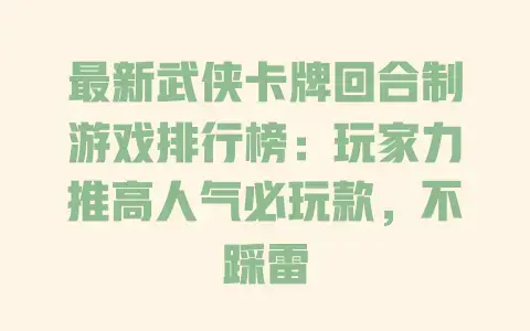 你玩过榜单里的哪款?或者有其他觉得“不踩雷”的武侠卡牌游戏,欢迎在评论区留个言——咱们一起帮更多玩家找到“能沉下心玩”的江湖。