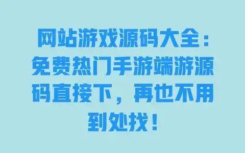 不管你是做独立游戏的开发者、还是想试试改源码玩的新手,这个网站游戏源码大全都能帮你省超多时间。我最近一直在用它,帮朋友找了好几个源码,个个都好用。如果你也想试试,赶紧去看看——要是找到合心意的源码,欢迎回来跟我说说你要做什么游戏!