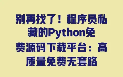 ,这样再改自己的代码,肯定不会错。其实找Python源码的核心,不是“找多全的平台”,而是“找把你当朋友的平台”。那些程序员私藏的平台,本质上都是“想帮别人少走弯路”——他们分享源码,不是为了涨粉,是想让更多人用Python解决问题。