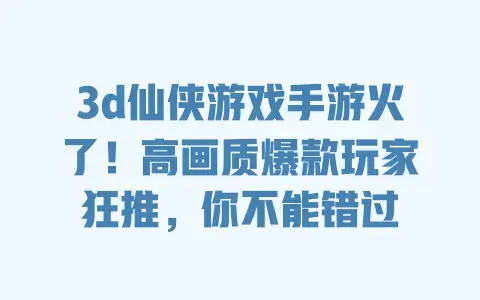 其实 3D仙侠手游的火,本质是行业终于读懂了玩家的“仙侠梦”:不是要当“天下第一”,而是要“在仙山里有个家”,有能一起聊天的朋友,有能慢慢摸鱼的日常,有能打动自己的细节。如果你最近也在找这样的游戏,不妨试试玩家狂推的几款——对了,你玩过最让你惊艳的仙侠手游细节是什么?欢迎在评论区跟我聊聊~