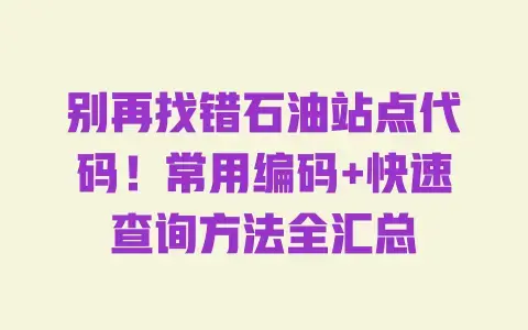 其实找石油站点代码真的不难,关键是有一份系统的清单+知道怎么快速查新代码。我整理的清单你直接拿走用,要是不够再问我;这3种方法你试一次就知道有多省时间——去年老张用了这些方法后,再也没因为代码错而延迟发货,还反过来帮我补充了几个新站点的代码。