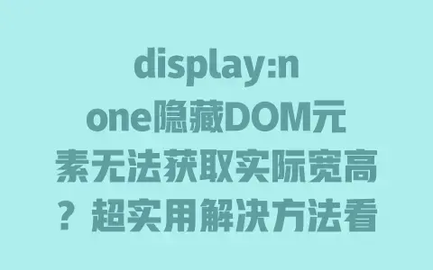 别慌,这篇文章就针对这个高频痛点展开:先帮你理清display:none导致无法获取宽高的根本原因,再拆解3种拿来就能用的解决技巧——比如用visibility:hidden替代(保留渲染但隐藏视觉)、临时渲染元素再快速隐藏(拿到尺寸后再处理)、用position偏移让元素“藏在视野外”(不影响布局却能拿到尺寸)。每一种方法都讲清原理、给出代码示例,连新手都能跟着操作,再也不用为“隐藏元素的尺寸”发愁。