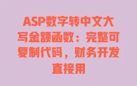 ASP数字转中文大写金额函数:完整可复制代码,财务开发直接用