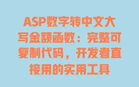 别再浪费时间造轮子了!这篇文章直接给你一套完整可复制的ASP数字转中文大写金额函数——不管是整数金额、带小数的金额,还是“0.5”“10000”这种特殊情况,函数都能精准处理:零的省略、角分的显示、单位的进位,全帮你搞定。不需要你研究复杂的字符串逻辑,粘到项目里调用就行,分分钟解决财务系统、订单页面里的大写金额转换问题,把时间省下来做更有价值的开发工作。