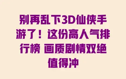 你是不是也遇到过这种糟心事儿?刷到仙侠手游广告,画面里仙山云雾缭绕,角色御剑帅到炸,结果下载下来一看——仙山像糊了层马赛克,角色发梢硬得像钢丝,剧情更敷衍,上来就是“主角父母被魔修杀死,你要复仇”,然后就是无限打怪升级,玩半小时就想卸载?我去年帮朋友找仙侠手游,前前后后试了五六个,全是这种“广告诈骗”款,直到后来 了一套选游戏的标准,才筛出真正能打的——就是这份高人气3D仙侠手游排行榜,帮你直接跳过那些坑,只留画质剧情双绝的宝藏款。