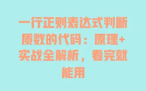 (“111”重复两次),是非质数。这个思路不是我原创的,来自正则领域的经典教材《Mastering Regular Expressions》——书里提到,正则的“反向引用+重复”可以检测“周期性字符串”,而质数的判断,本质就是“这个数字对应的字符串不是周期性的”(除了自身长度的周期)。去年我把这个方法教给朋友,他后来面试时用这行代码代替循环,面试官问清逻辑后直接给了offer——因为这个思路体现了对数学和正则底层逻辑的理解。