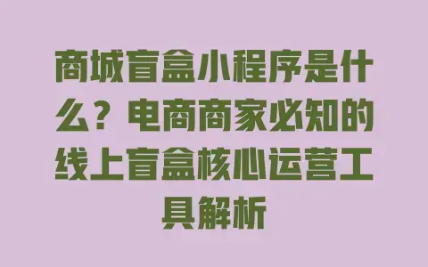 商城盲盒小程序是什么?电商商家必知的线上盲盒核心运营工具解析