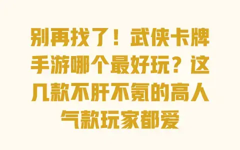 如果你也在找这样的武侠卡牌,不妨试试这几款——要是玩了觉得不错,欢迎来评论区告诉我你的体验;要是有其他好用的款,也可以推荐给我,我帮你测测是不是真的“不肝不氪”!