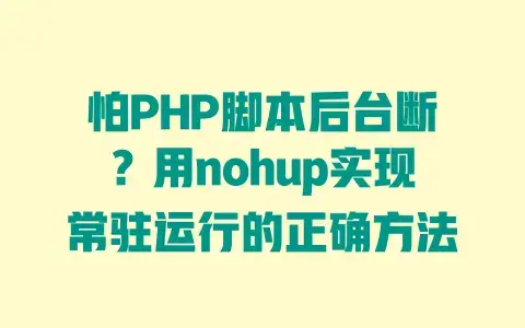 这篇文章就帮你把“nohup常驻PHP脚本”的事儿彻底掰明白——不只是教你敲“nohup php xxx.php &”,而是从根儿上讲清楚:为什么普通后台运行会断?nohup是怎么拦截SIGHUP信号的?再一步步教你正确配置:怎么结合&让进程脱离终端,怎么把输出日志定向到文件避免磁盘爆满,甚至教你用ps命令检查进程是否真的活着。