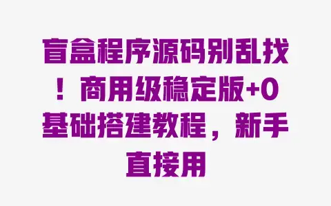 这篇文章直接帮你解决核心问题:给你商用级稳定的盲盒程序源码——代码干净、功能完整,支持自定义盲盒内容、概率设置、支付对接,拿来就能用于实际运营;更配0基础搭建教程,从服务器购买到源码部署,从后台配置到前端展示,每一步都有图文指引,不用懂代码也能跟着走,半天就能把盲盒系统搭起来。不管你是想做微信小程序盲盒、H5盲盒,还是独立App,这套源码和教程都能覆盖需求,帮你快速把“开盲盒”的idea变成能跑的项目,少走弯路少踩坑。