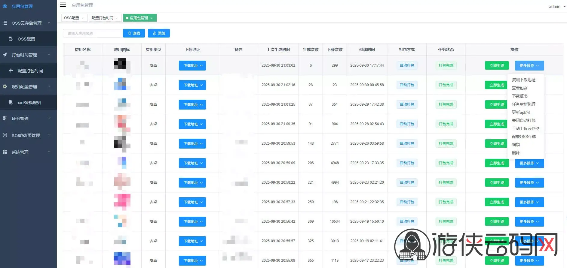 完整版,单独程序包,完整版,包含上面所有功能,并增加可以使用自定义证书、多租户、并行打包(能同时处理百个包)、每打包后大小随机变化、支持单包上传多个不同oss、下载包名字随机固定切换(固定下载链接)、安卓h5封包功能、IOS免签h5封包功能。