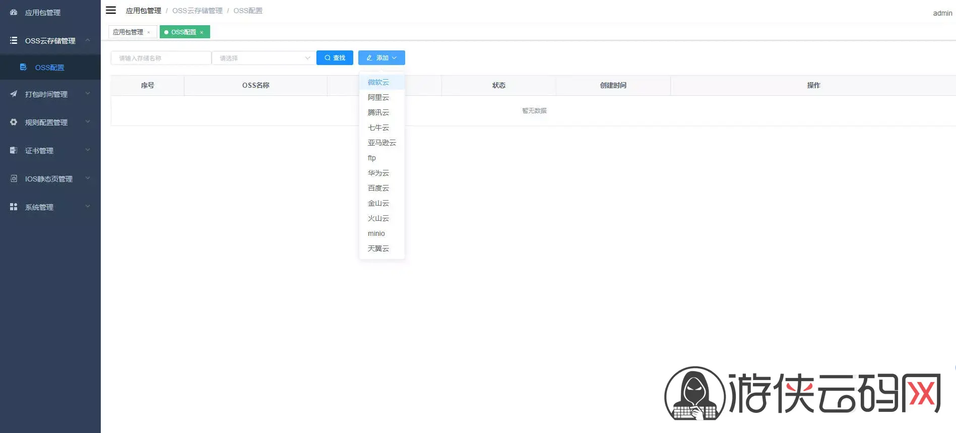 8、支持单独包能上传到多个OSS各种云储存,包含七牛,华为,阿里,腾讯,亚马逊,微软,百度,金山,FTP,minio, 火山,天翼等。